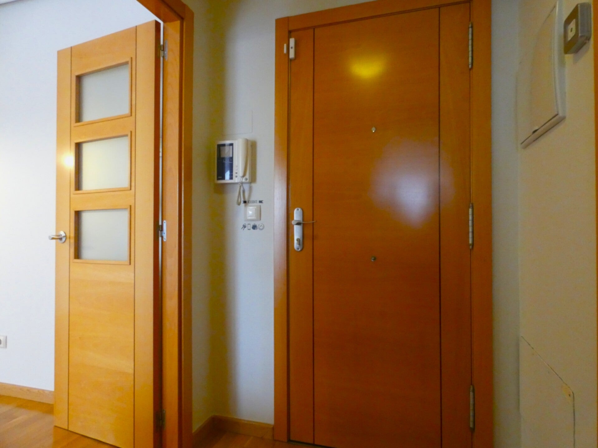 El piso dispone de un dormitorio principal muy espacioso, equipado con armario empotrado. Además, cuenta con otro armario empotrado extra en el pasillo, proporcionando un excelente espacio de almacenamiento. El baño es completo y equipado con bañera.