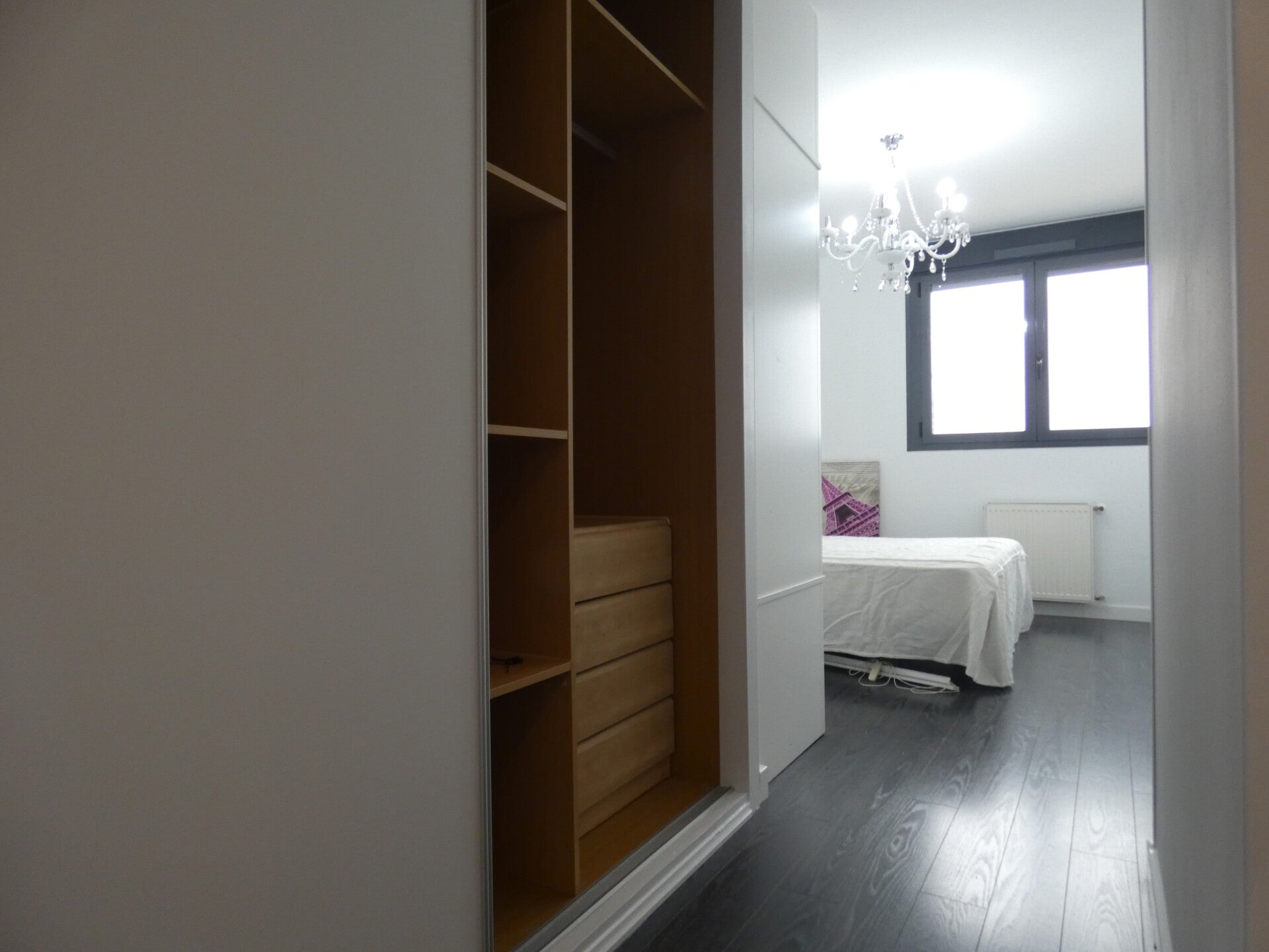 Gran salón muy luminoso, con muebles empotrados a medida en madera de roble natural, aportando elegancia y funcionalidad.